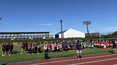 2025/09/23 岐阜県タッチラグビー大会を開催しました 9月21日(日) 岐阜県メモリアルセンター補助競技場にて、県内6スクールの選手、保護者、コーチ、女子チームが参加しタッチラグビー大会が行われました。秋空の下、約300人が手軽に楽しめるタッチラグビーを満喫し、一緒に汗を流しました。最後にキックニアピンゲームが行われ、会場は大いに盛り上がりをみせました。 ![]() ![]() |